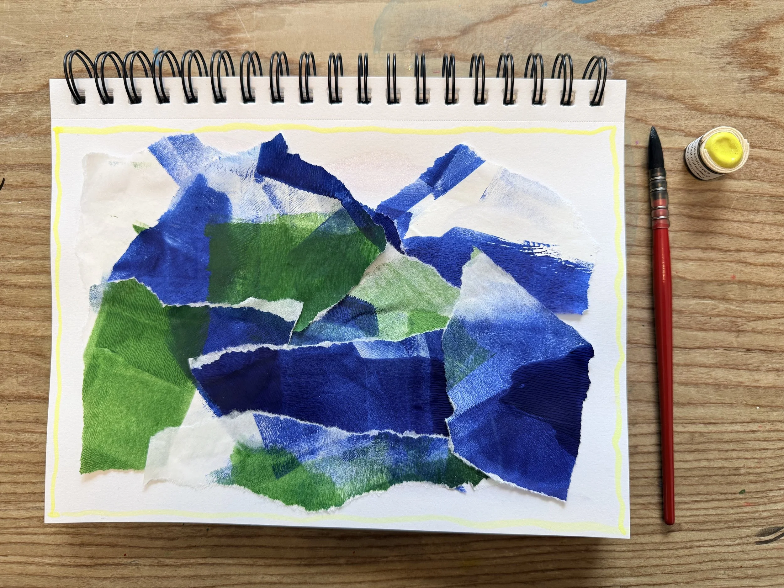 Figure 5, Art therapist response art: Playing with the arrangement of collage materials.